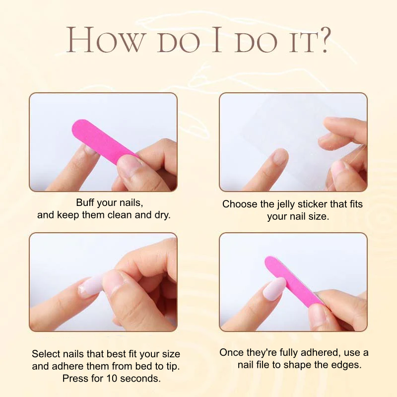 Jelly glue stickers are ideal for short-term wear and reusability. For a longer hold, a separate nail glue is recommended.