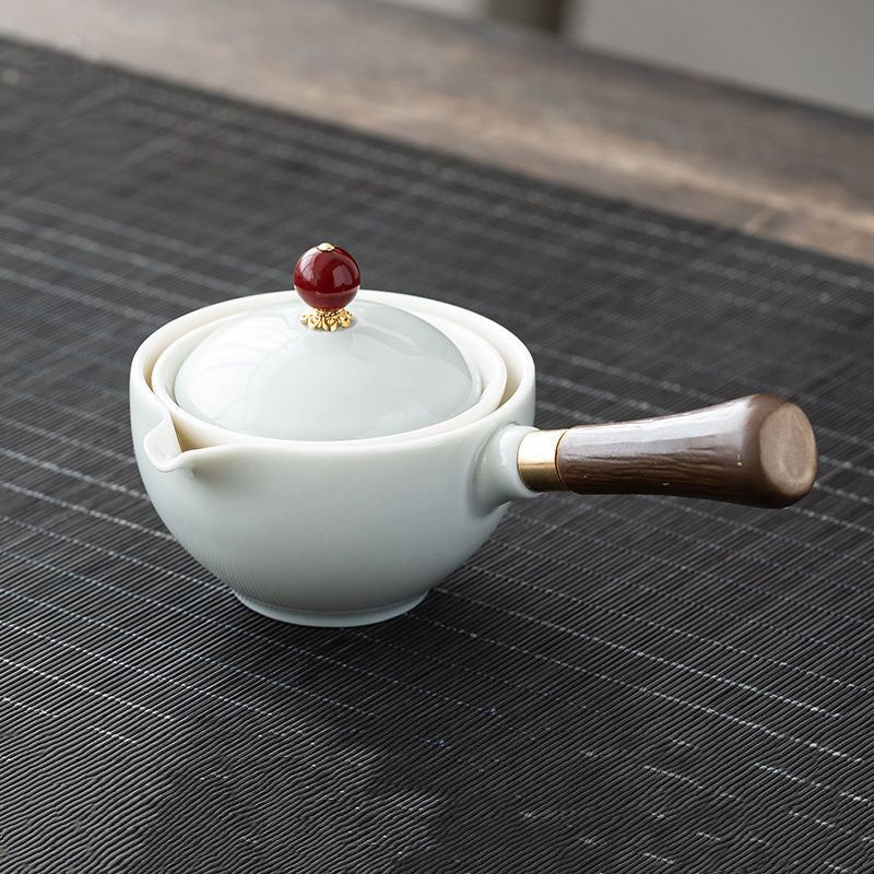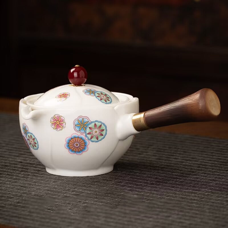 Premium Material - The tea pot is crafted from high-quality raw mineral clay and fired at high temperatures. It features a detachable handle made of heat-resistant black mountain wood and a 304 stainless steel filter with evenly distributed pores.