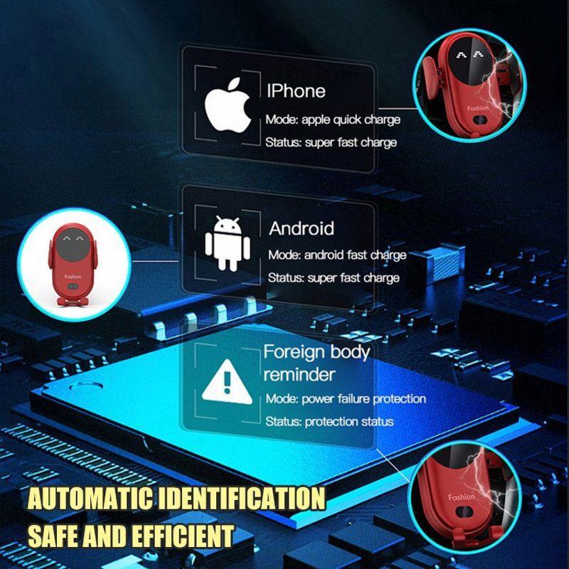 Just place your phone on the holder and the clamp will automatically grip it and keep the phone begins charging. One-touch release that touches the back sensor area of the car wireless charger to remove the phone without unplugging the device.