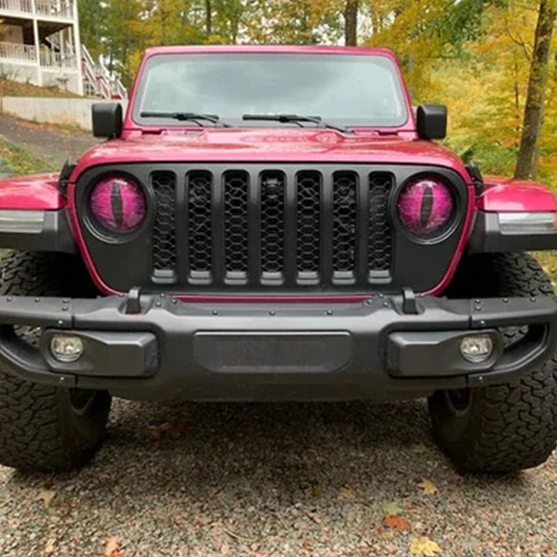 SUITABLE FOR ANY ROUND HEADLIGHT: Made of perforated vinyl you can still see it at night. They come in 8'' size, and you can also trim them to better fit your headlights. For example, if you have a JK 2017 then it is 7" eyes. JL and Gladiator are 8" unless special edition and it could be a 9". Unless you plan to remove your grill (not necessary) to install. 8 " should be fine. If you have the color inserts on your headlights and normally take an 8" it will only need a 7".