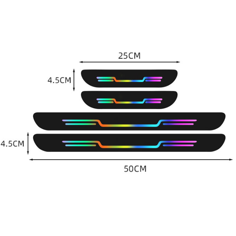 LASER THRESHOLD STRIP - This product can glow in the dark with eye-catching colors, allowing passengers to see the position of the threshold when getting in or out of the car. It can especially protect the safety of passengers at night. When the door is opened, it can alert surrounding vehicles, which is effective to avoid scratches, collisions and other accidents.