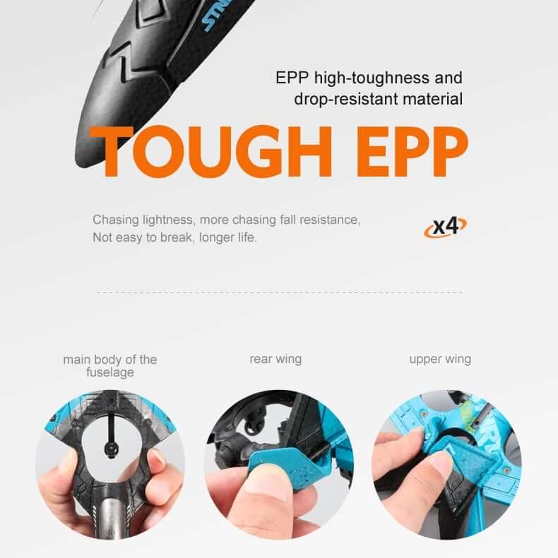 - The aircraft uses ultra-tough EPP unique foam material, which is flexible and resistant to fall.