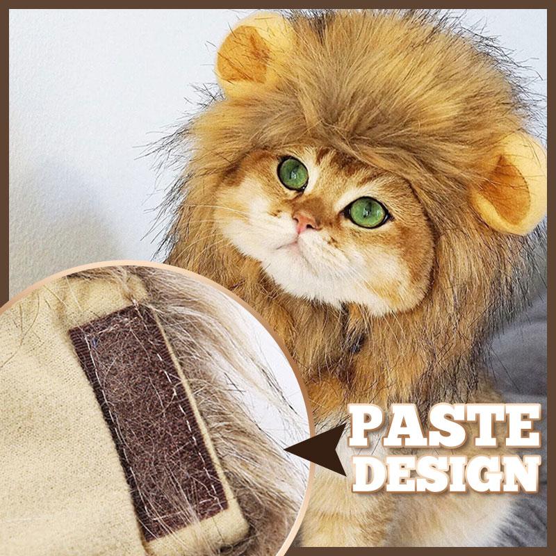 Our pet wig is easy to put on and off with a magic stick fastener, Just put it on your pet's head and buckle the magic stick fastener, the lion mane will not easy to slip off .