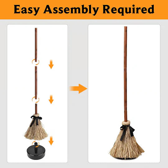 This witch’s broom gives the illusion of floating, adding an eerie and magical touch to your Halloween decor.