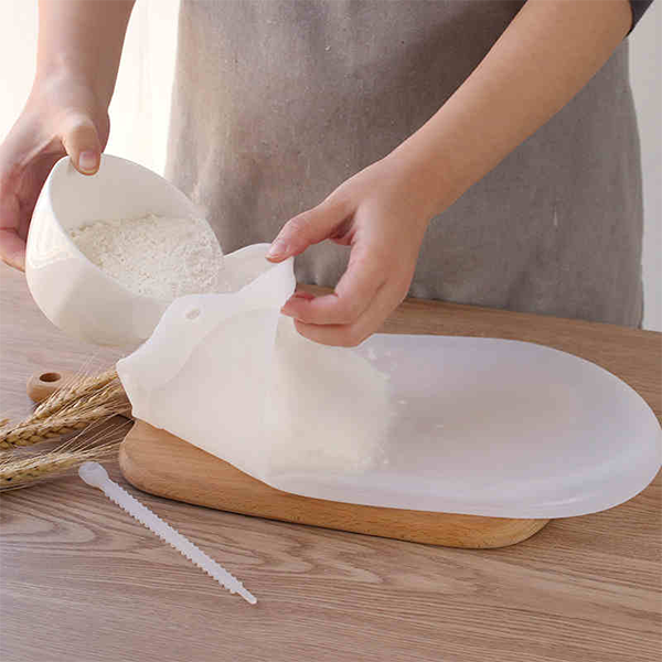Made of high-quality food-grade silicone. The good non-stick effect, not easy to stick on the food, convenient to use and easy to wash. Just add the ingredients such as flour, water, eggs mix all together, tie up the bag and start kneading. -