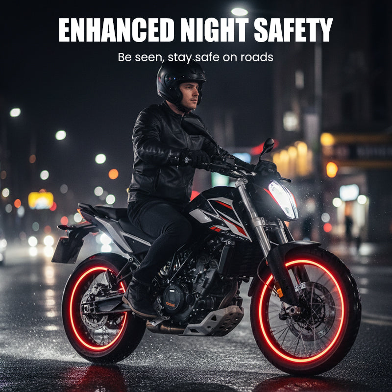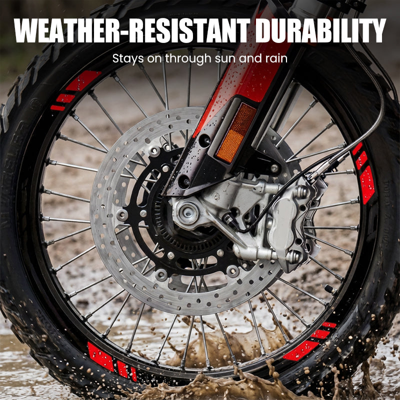 HIGH-VISIBILITY REFLECTIVE MATERIAL - Significantly boosts your visibility to other drivers during nighttime or low-light conditions. The prismatic reflection technology catches and throws back light, making your wheels stand out for enhanced road safety.