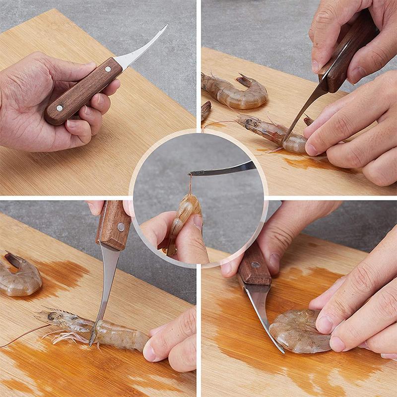 - How to use Shrimp Thread Knife: Cut the shrimp shells, then easily peel off the shells and remove the shrimp threads.