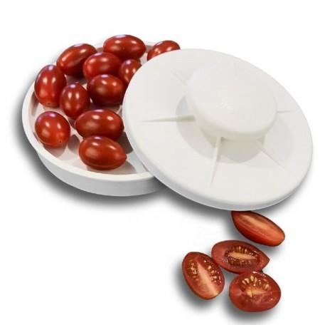 FAST, SAFE and VERSATILE! The Rapid Slicer is designed for slicing a large quantity of small fruits and vegetables such as cherry tomatoes,grapes and olives in half quickly and safely. The unit’s large capacity can hold up to 2 cups of cherry tomatoes, grapes or olives at once.