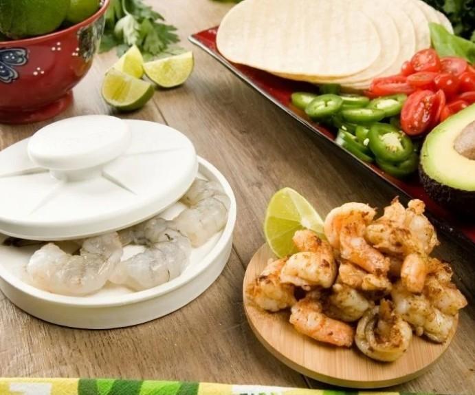 - VERSATILE: Unlike most slicers which are just for ONE type of food such as tomatoes, the Rapid Slicer is perfect for slicing breads, bagels, or meats like CHICKEN breasts into thin, even cutlets and SHRIMP into bite size pieces for tacos or pasta dishes. Use as a press to drain frozen spinach or shredded veggies. The lid makes a perfect sized pie dough cutter for hand pies or empanadas!