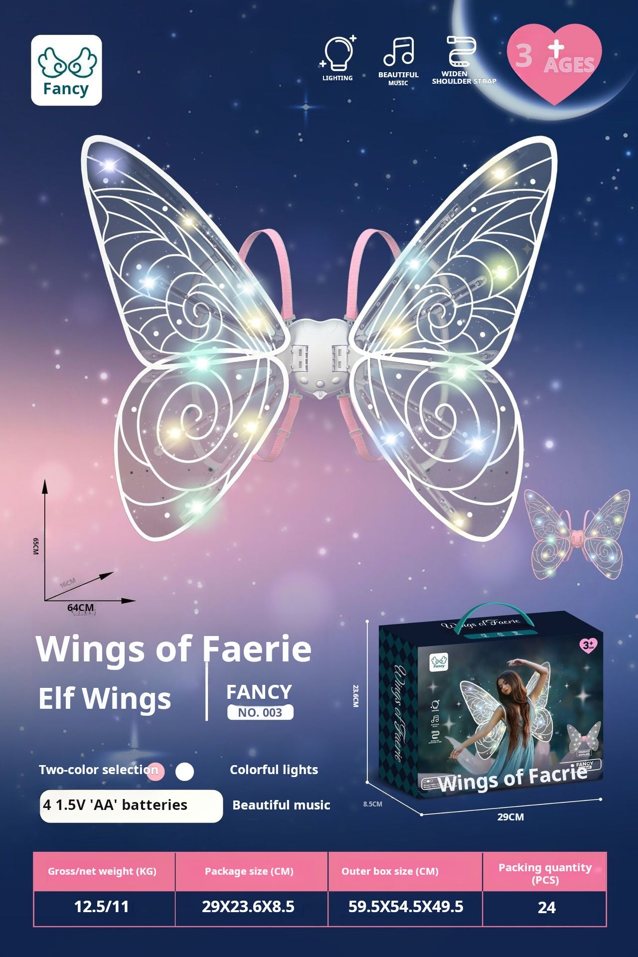 The ultimate accessory for girls and women who want to add a touch of magic to their wardrobe! These captivating wings are designed to enchant and dazzle, with a stunning array of LED lights that sparkle and shine as you move. Whether you're dressing up for a birthday party, a Halloween night out, or simply adding some glamour to your everyday wardrobe, these wings are guaranteed to turn heads.