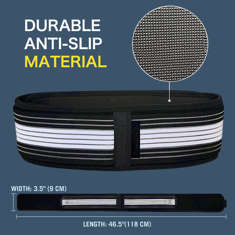 The smart design of this belt allows you to adjust the tightness and compression to your preference. Simply adjust the two elastic tension straps and get a tighter or looser fit.