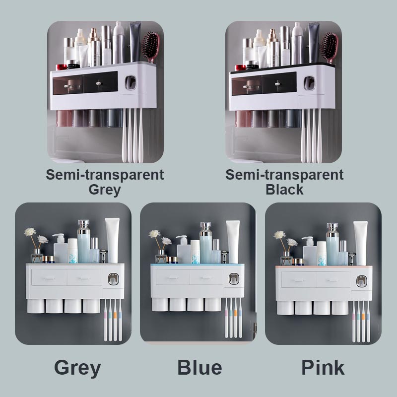 This multi-function toothbrush holder comes with an automatic toothpaste dispenser, making it easy to squeeze the toothpaste without waste. The 2/3/4 magnetic mouthwash cups are designed with an upside-down drain, dust-proof, and waterproof. You can hang 6 toothbrushes simultaneously, which is suitable for the whole family.