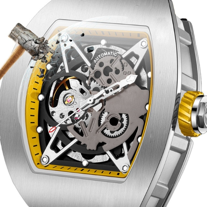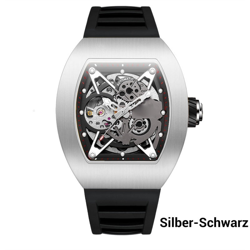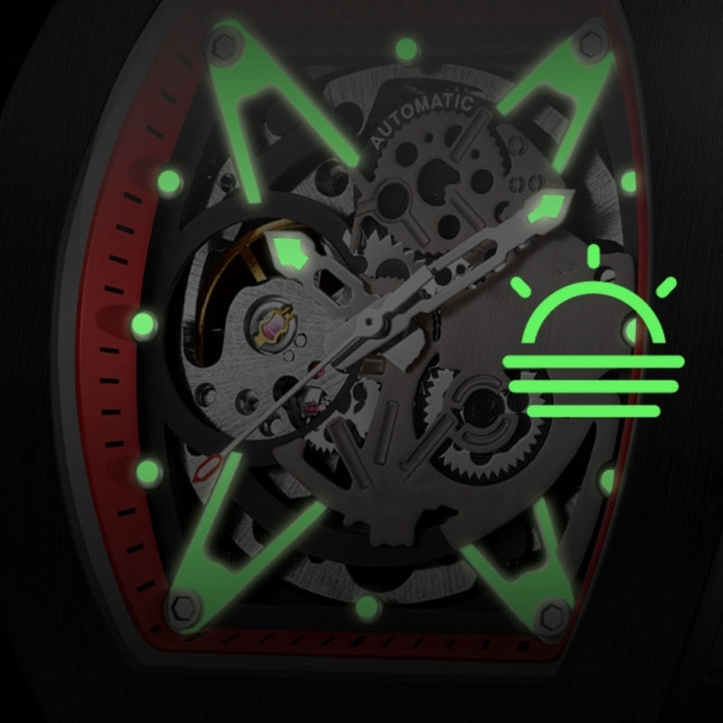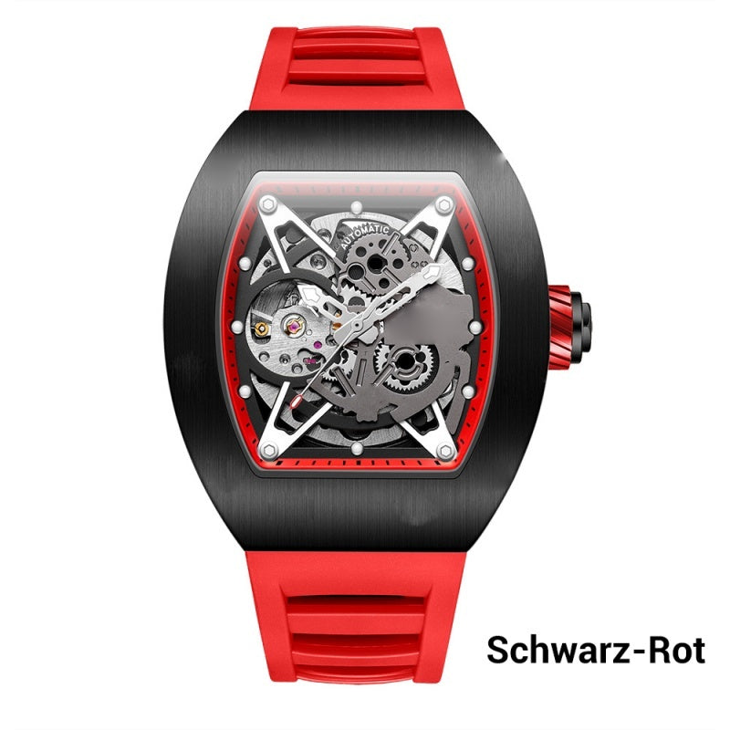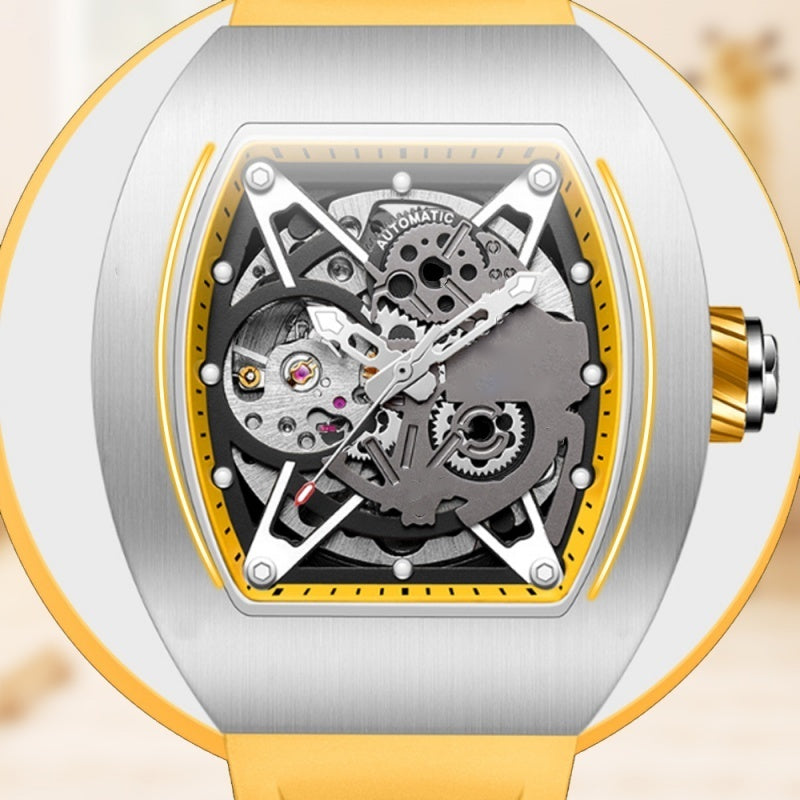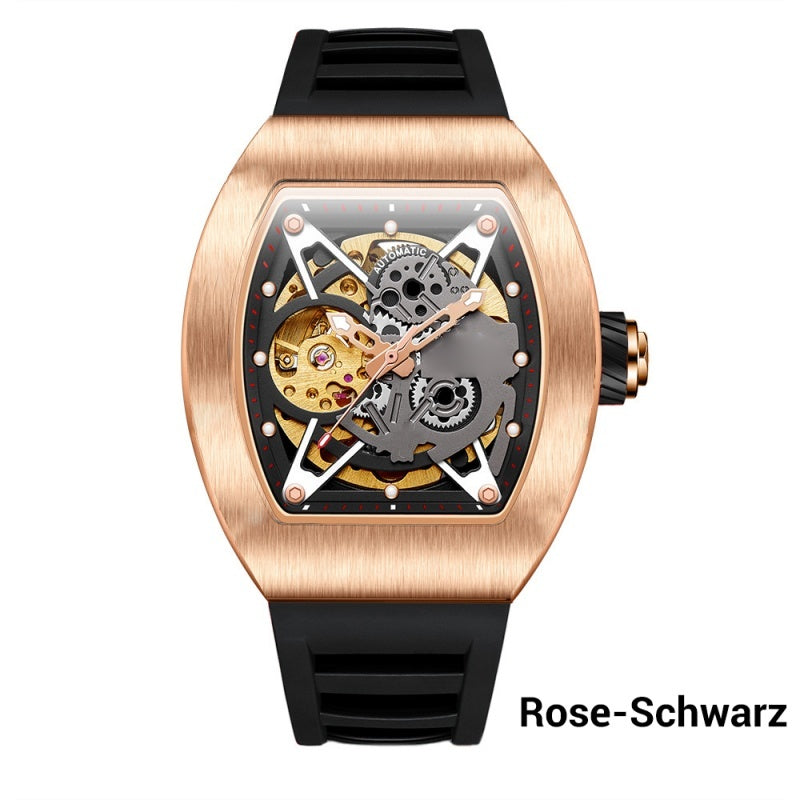 STYLISH DESIGN: The skeletonised design is modern and adds a touch of glamour to this automatic watch. Available in a variety of colours and with a unique barrel-shaped dial, this watch is guaranteed to turn heads and make a fashion statement.