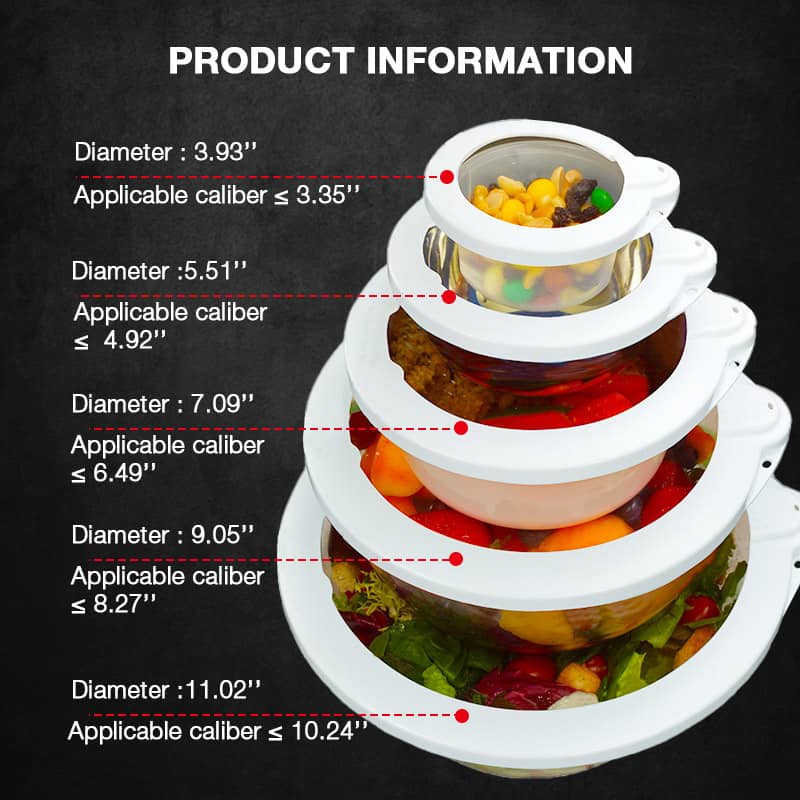 - We designed these lids to keep food fresh longer and prevent spills. Avoid unnecessary transfers to other containers, as these lids fit directly over bowls, plates, jars, pots, pans & even hard fruits themselves.