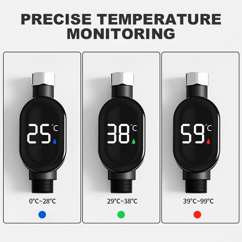 PRECISE TEMPERATURE MONITORING: Provides real-time water temperature readings. Blue light indicates low temperature, green shows optimal warmth, and red shows when the water is too hot, ensuring a comfortable and safe bathing experience.