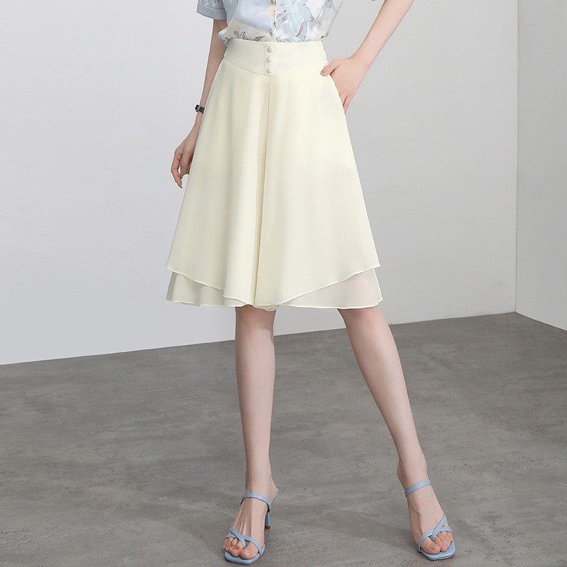 Luxurious Chiffon Fabric: The culottes are made from high-quality chiffon fabric that exudes sophistication and refinement. The lightweight and breathable material offers comfort and a delicate drape, ensuring you feel elegant and confident throughout the day or evening.