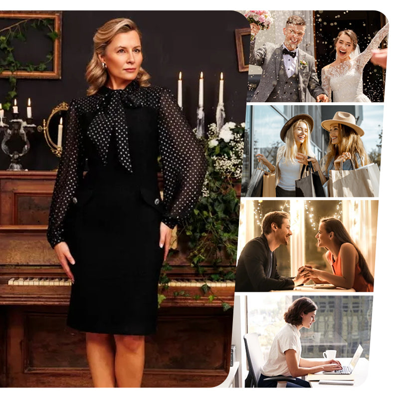 🌸Women's Dress with Bow Tie Neck