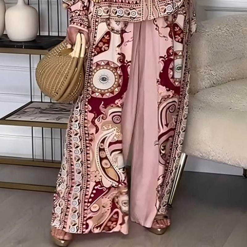Package Includes: 1*Women’s Ethnic Print Top & Wide Leg Pants 2-Piece Set