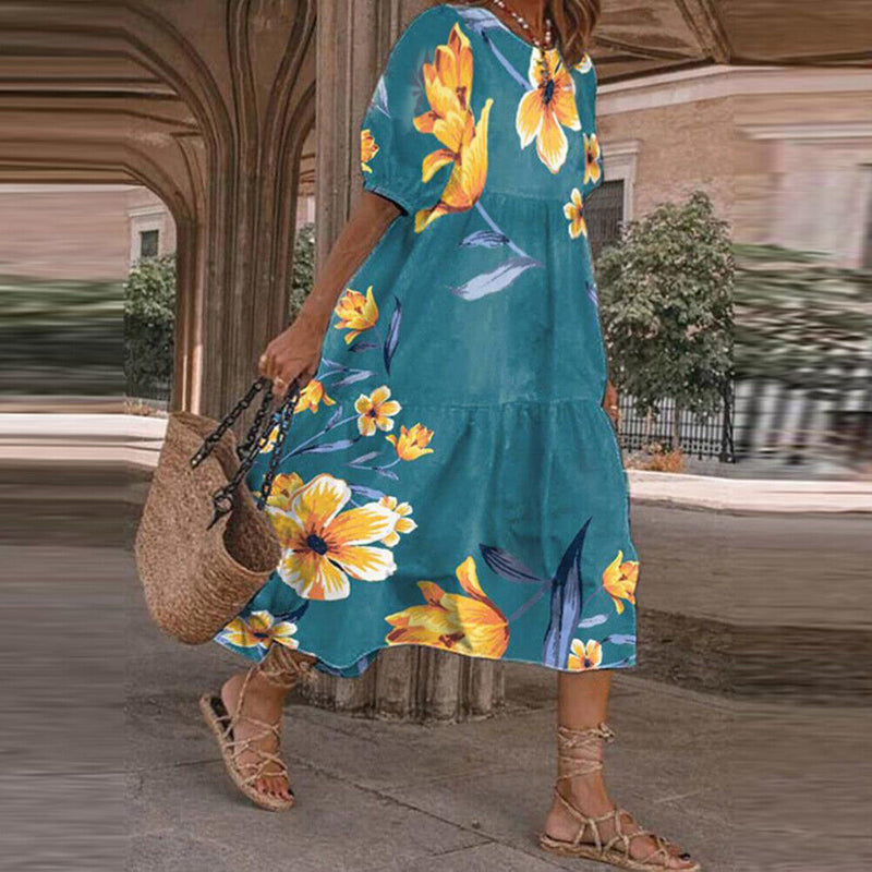 Versatility: The Women's Spring and Summer Casual Loose Round Neck Floral Dress can be worn for a variety of occasions. The dress is perfect for casual days out, family gatherings, or even work events. The dress can be dressed up or down with the right accessories and shoes, making it a versatile and stylish option for any wardrobe.