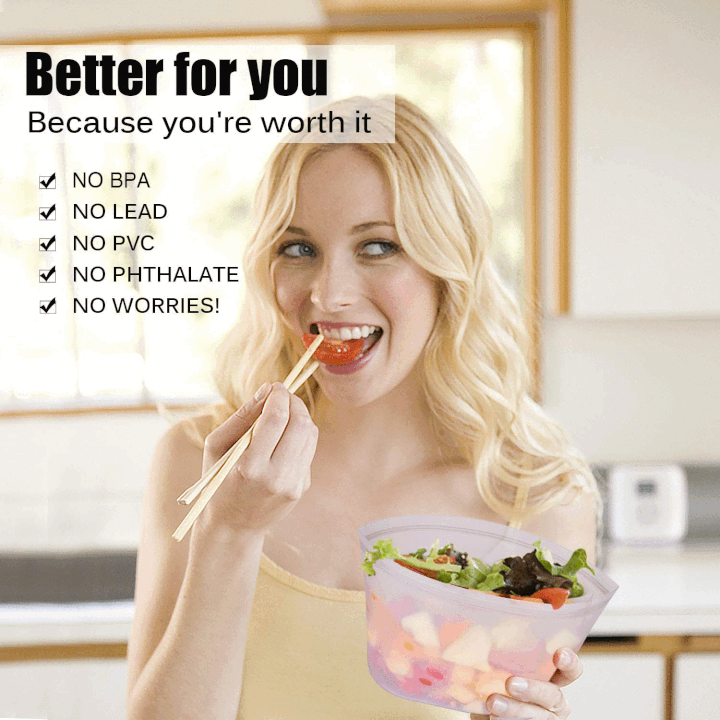 - Hergestellt aus 100% Platin-Silikon. Weil Sie es wert sind. Herkömmliche Plastikbehälter sind auf Erdölbasis hergestellt und können schädliche Chemikalien enthalten. Diese Giftstoffe können in Ihre Lebensmittel übergehen, insbesondere beim Erhitzen oder in der Mikrowelle. Aus diesem Grund ist reines Silikon die beste Wahl für Ihre Gesundheit.